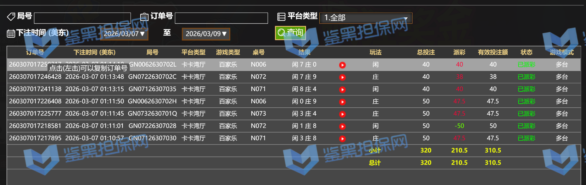 8.若用户经核实证明有套利嫌疑(参考一般游戏套利行为判断标准)将封号处理,鉴黑担保网不再提供该用户发布维权等相关服务;